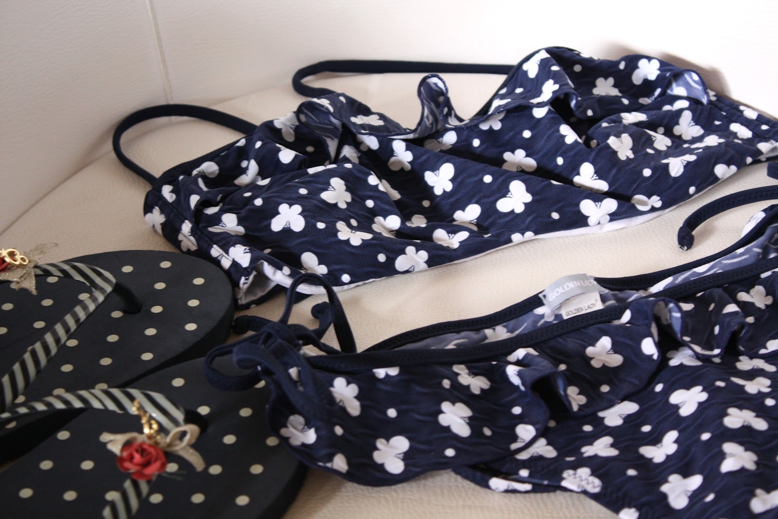 Ero veramente indecisa su cosa scegliere, ma alla fine la mia scelta è ricaduta su questo costume con il pezzo sopra a fascia, blu con delle farfalline bianche. Lo trovate carinissimo anche voi?